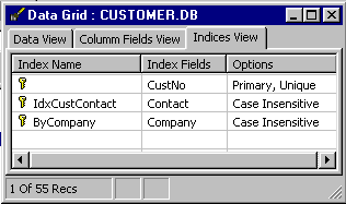 The table Indices view show you the details of the available indexes on your table. This can be very important for programmers who need to ensure that their SQL Queries will perform well. Selecting and sorting by indexed columns result in better performance, so even the novice can use this information to decide how best to sort.