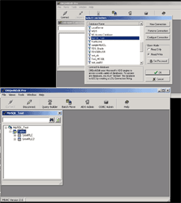 Double click your new MySQL DSN name, or select the name then click OK. DBQwikEdit will now be connected to your MySQL database.